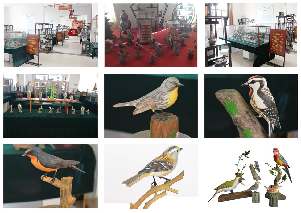 選送作品《百鳥朝鳳》采用泰州傳統(tǒng)的彩繪木雕工藝。通過在木雕上繪上各種顏色,讓鳥幾可亂真。由于鳥的羽毛紋理采用了微雕工藝,摸上去的手感也和真的羽毛模一樣,配上相宜的樹樁底座或蘆葦葉,色彩艷麗。層次豐富,惟妙惟肖、淋漓盡致,達到了“精而不繁”“靜中含動”的效果。